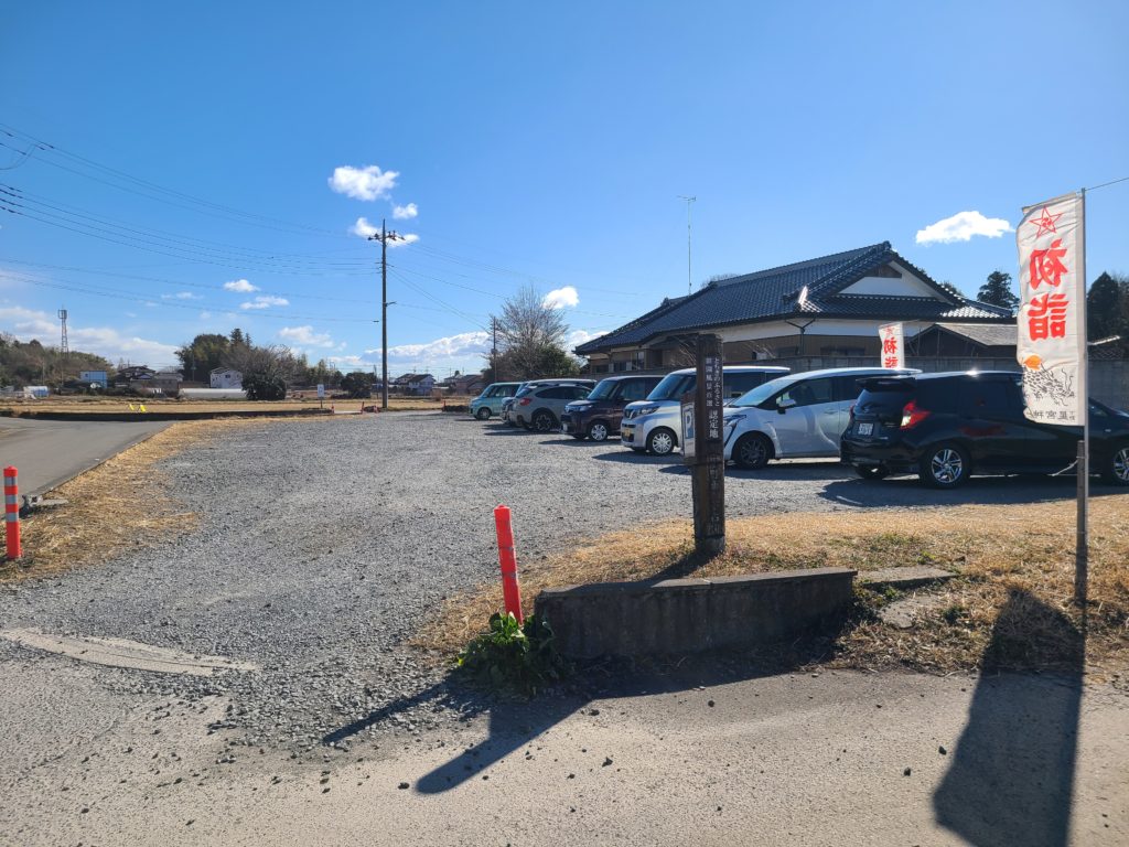 石鳥居の南側には、参拝者用の駐車場があります。写真のように10台程度が駐車可能。訪れたのは1月末の寒い日でしたが、参拝客は常にいました。
