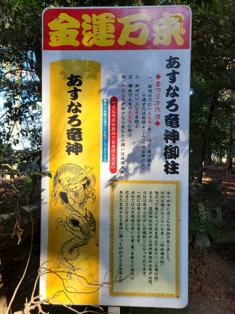本殿裏には「あすなろ龍神御柱」という心願成就の設置物があります。
