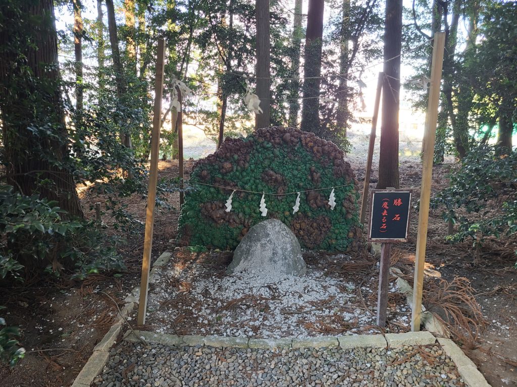 本殿の裏には「勝石(魔去る石)」というものがあります。