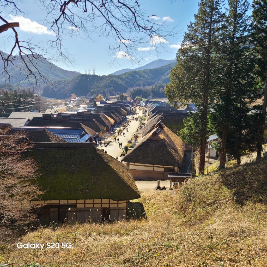 高台から見る、大内宿です。美しい山里の風景が望めます。