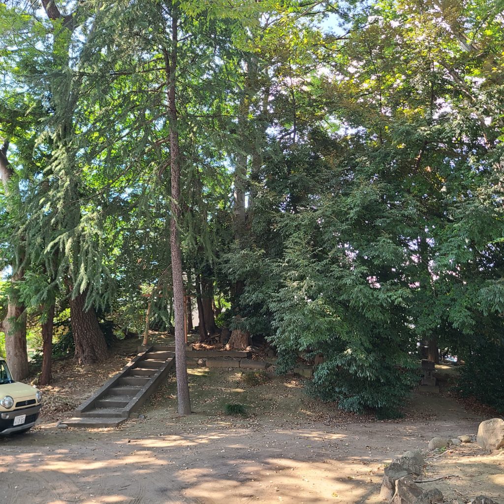 神社の駐車スペースは、写真の二の鳥居の左側の、神社境内にあります。ですので、自動車で行く場合は一の鳥居を潜り、二の鳥居を潜らず左へ行きます。