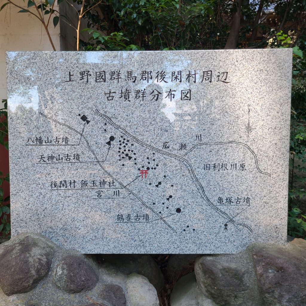 この飯玉神社の東側には広瀬川が流れており、広瀬川の流れに沿うように、川の西部の土地が高くて、水害の危険も少ない、見晴らしのよい場所に、多くの古墳が存在しています。